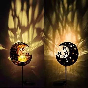 Hapjoy Moon Solar Lights Outdoor Garden Decorative Star Solar Lantern with Warm Light Waterproof Metal Outdoor Decoration for Patio, Pathway or Yard Garden Decor
