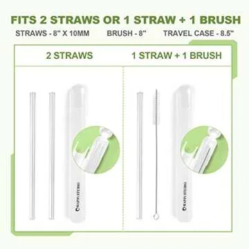 HAPPi STUDIO 8-Pack Glass Straws with Travel Case - 8"x10mm Reusable Straws with 2 Cleaning Brushes - Clear Glass Straws Shatter Resistant - Glass straws Drinking Reusable Smoothie Straw, Coffee Straw