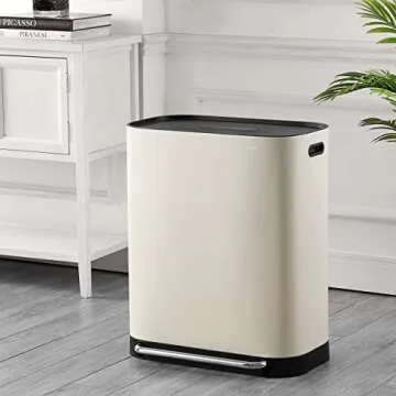 One of the standout features of this trash can is its built-in damper, which ensures the lid lowers quietly, preventing any disruptive noises in your home. Additionally, the lid closes tightly to lock in unpleasant odors, offering a fresh environment for your family. Whether you’re dealing with regular trash or recyclables, this dual-compartment bin has you covered with its clever layout.