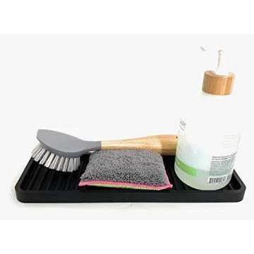 This imported tray features a thoughtfully sized 12-inch by 4-inch surface that not only accommodates your essentials but also elevates your kitchen aesthetic. The sleek, black finish complements any decor, making it a versatile presence in your home. Keep your countertops free from slime and unpleasant odors; our raised line design promotes optimal air circulation for faster drying of sponges and rags, while protecting those precious surfaces from unsightly water damage.