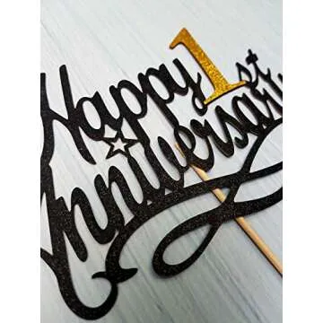 Happy 1st Anniversary Cake Topper - 1st Wedding & Company Anniversary, First Birthday Party Decoration, Double-sided Black Glitter