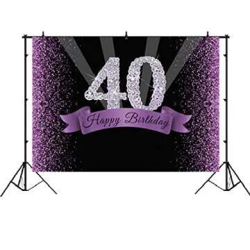 Happy 40th Birthday Photography Backdrop Glitter Purple and Black Dots Background for Adult Woman Birthday Party Decorations Shining Diamond Number 40th Birthday Banner for Photo Studio Props 7x5ft
