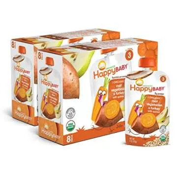 Happy Baby Organics Hearty Meals Stage 3 Baby Food, Root Vegetables & Turkey with Quinoa, 4 Ounce (Pack of 16)