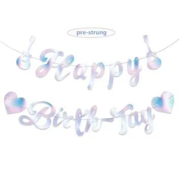 Happy Birth-Tay Banner, Iridescent Birthday Decorations, Pre-strung Birthday Party Banners for Girls Boys Holographic Singer Birthday Garland