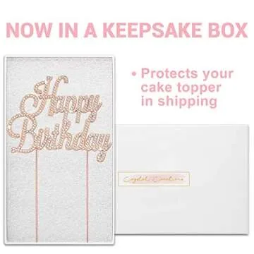 Happy Birthday Cake Topper - Premium Rose Gold Metal - Happy Birthday Party Sparkly Rhinestone Decoration Makes a Great Centerpiece - Now Protected in a Box