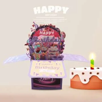 Happy Birthday Pop Up Card,Funny Sweet 3D Birthday Gift Box with Envelopes,Unique Handmade Foldable Celebration Cards for Adults,Daughter,Son,Mom,Dad,Friend(Blue)