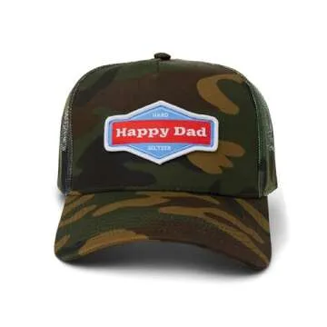 Happy Dad Trucker Hat, Camo, Trendy Mens Hats with Breathable Mesh Back, Adjustable Snap Closure, Birthday Gifts for Men and Women, Snapback Cap
