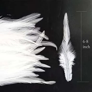 Happy Feather 100PCS Saddle Hackle Rooster Feather for Crafts, 5-7 inch Natural Pheasant Neck Feathers DIY Pendant Earrings Dream Catcher-White