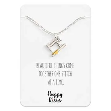 Happy Kisses Sewing Charms Necklace Gifts For Quilters and Sewers – Gift Card Message “Beautiful Things Come Together One Stitch At A Time”