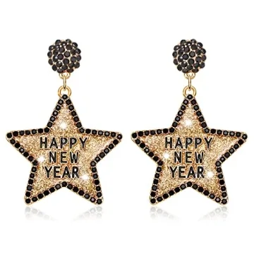 Show more If you're ready to bring in the New Year with style and sparkle, look no further than our Happy New Year Earring for Women. These stunning earrings are designed with a striking glitter star dangle that whimsically displays ‘Happy New Year’ while featuring a dazzling rhinestone edge. Crafted from high-quality alloy and shimmering metallic materials, they promise a lightweight, comfortable fit without sacrificing durability or elegance. At approximately 2.1 inches in length, these earrings are perfect for leaving a memorable impression at any festive gathering.