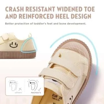 The thoughtful design of these toddler sneakers includes a wider toe box, offering ample space for little feet to grow. The reinforced heel design promotes better ankle movement, while the one-piece canvas construction ensures durability even with daily wear. The soft design is particularly beneficial for children's bone development, combining safety and comfort seamlessly.