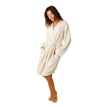 Happy Place Women's Waffle Robe Lightweight Organic Cotton Sustainable Unisex Bathrobe (Small, Wheat)