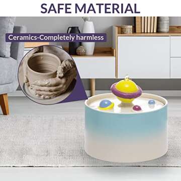 Happy & Polly Cat Water Fountain Ceramic with 3 Replacement Filters Automatic Dog Water Fountain for Small Dogs Strong Filtration System Durable Upgraded Quiet Pump USB Port Large Size 1.8L Capacity
