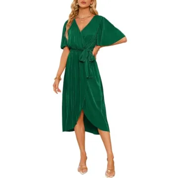 Show moreIntroducing the Happy Sailed Wedding Guest Dresses for Women – the ultimate combination of elegance and comfort, perfect for all your formal occasions! This stunning Short Sleeve V Neck Wrap Dress is crafted from high-quality materials, ensuring a luxurious feel that not only looks beautiful but also stands the test of time. Featuring an eye-catching pleated design and a flattering tailored silhouette, this midi dress enhances your figure beautifully. Whether heading to a wedding, cocktail party, or graduation ceremony, this versatile piece will become a staple in your wardrobe.