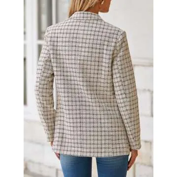 Happy Sailed Womens Plaid Blazers Dressy Casual Fashion Work Suits Long Sleeve Double Breasted Open Front Oversized Tweed Blazer Jackets Professional Outfits for Work Brown S