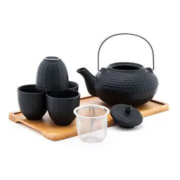 Happy Sales HSTS-ARCBK4, Tea Set with 26 oz Teapot,Four Cups and Bamboo Tray, Black