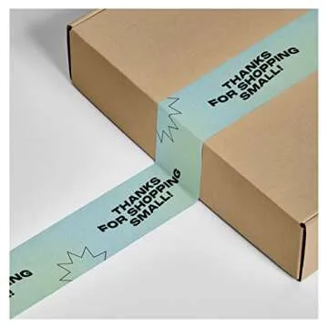 Show more Unleash your creativity and elevate your packaging game with the Happy Tape Decorative Kraft Paper Packing Tape. Perfectly designed for small businesses looking to make a memorable impression, this eco-friendly tape measures 1.88 inches wide and spans an impressive 55 yards (164 feet) long. Crafted from high-quality, recyclable paper, this tape not only adds a touch of charm and personality to your packages but also reflects your commitment to sustainability.Each roll features a delightful gradient color scheme adorned with the message 'Thanks for Shopping Small', helping you create a warm connection with your customers while promoting your small business ethos.