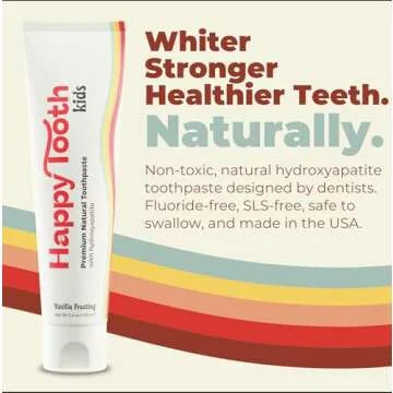 Happy Tooth Natural Hydroxyapatite Toothpaste, Fluoride Free, SLS Free, Whitening for Sensitive Teeth, Natural Ingredients, Dentist Formulated & Recommended, Adults & Kids, Vanilla Frosting 3.4 Fl Oz