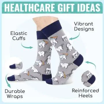 HAPPYPOP Dental Assisstant Gifts for Men - Dental Socks Men Tooth Socks Dentist Socks, Dental Hygienist Gifts Dental Students Gifts Dental Hygiene Gifts In Bulk