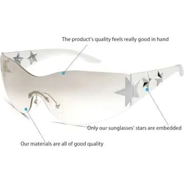 Haqptul Rimless Y2K Sunglasses Star Wrap Around Glasses 2000S Accessories for Women Men Trendy Fashion Cool Shield Shades (Transparent)