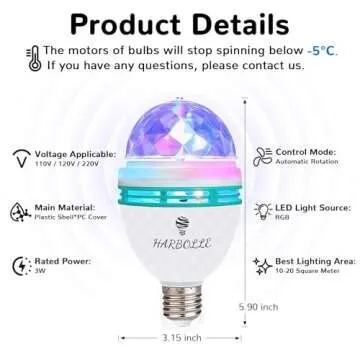 Unlike traditional disco balls that require complex setups and inconsistent light spreads, the HARBOLLE RGB Color Rotating Bulb offers a user-friendly solution with no installation hassle. Competitors may provide similar lighting effects, but the energy efficiency, longevity, and vibrant strobe features of HARBOLLE bulbs set them apart as superior choices for modern party lighting.
