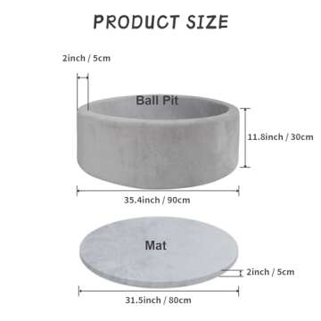 HARBOLLE Round Kiddie Ball Pit Handmade Soft Velvet Memory Foam Ball Pit Ideal Gifts for Baby Children Toddler Infant Outdoor Indoor 35.5 x 11.8 NOT Included Balls -Grey