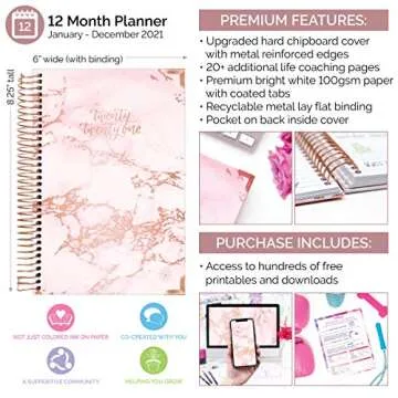 HARDCOVER bloom daily planners 2021 Calendar Year Day Planner (January 2021 - December 2021) - Passion/Goal Organizer - Monthly & Weekly Inspirational Agenda Book - 6" x 8.25" - Pink Marble