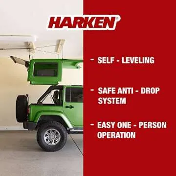 Show more This incredible hardtop storage hoist is a game-changer for Jeep enthusiasts and vehicle owners alike. Designed for ease and efficiency, it allows you to store your vehicle's hardtop safely and effortlessly, making use of your garage space like never before. Whether you own a Jeep Wrangler, Gladiator, or Ford Bronco, this product is universally compatible with all vehicle hardtops. Experience unprecedented convenience while maintaining order within your garage environment.