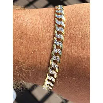 HarlemBling Men's Cuban Link Bracelet 14k Gold Over Solid 925 Sterling Silver Bracelet - 8.5" 8mm - Two Tone Diamond Cut Pave
