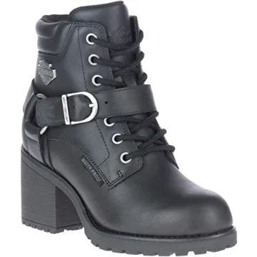 Show moreIntroducing the Harley-Davidson Women's Howell 5" Lace Leather Motorcycle Casual Boot in classic black, designed for the women who value both style and functionality in their footwear. Crafted from breathable waterproof full-grain leather, these boots are not only durable but also promise all-day comfort, making them the perfect companion for your dynamic lifestyle. The 4.5-inch shaft height and 2.75-inch heel provide a flattering silhouette while maintaining practicality. With reliable rubber outsoles, these boots ensure excellent grip and stability on various surfaces. Whether you're a motorcycle enthusiast or simply looking for a fashionable everyday boot, the Howell has you covered with its cool Harley Davidson hardware and chic lace-up design.