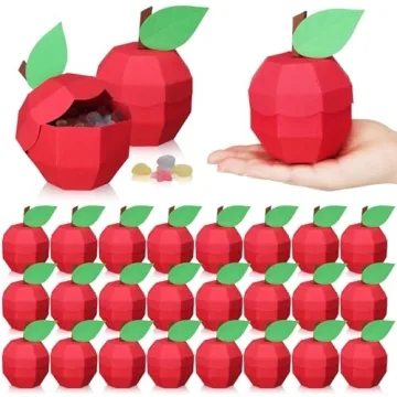 Show more Introducing the Harloon 24 Pack Large Apple Box! Perfect for teachers and gift-giving occasions, this delightful ensemble of apple-shaped treat boxes will add a touch of charm and creativity to your gatherings. Each box measures about 4 inches in diameter and 5 inches in height, including the stem, making them just the right size for accommodating small gifts, candies, and tokens of appreciation. Crafted from durable paperboard, these boxes promise longevity and reusability, all while showcasing a stunning vibrant red hue reminiscent of fresh apples. Their eye-catching aesthetic is complemented by charming leaves on top that effortlessly enhance the overall design.