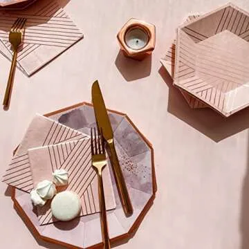 Harlow & Grey Amethyst Small Party Plates Set, 24 Ct Pack, 8” Elegant Disposable Paper Dinnerware Supplies for Birthday, Wedding, Shower, Anniversary, Engagement, Holiday, Pale Pink & Rose Gold