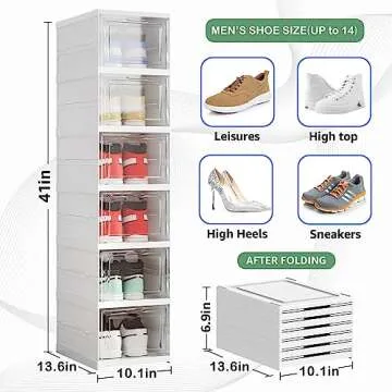 Show moreIntroducing the Harmon Wandyer Shoe Storage Organizer Box – your ultimate solution for an organized and clutter-free space! With its innovative 6-tier foldable design, this shoe storage organizer is perfect for keeping your footwear neatly arranged. Whether you're dealing with a small closet, an entryway, or under-bed storage, these boxes fit seamlessly into every nook and cranny. Easy to assemble and equally simple to collapse, they're as functional as they are stylish.
