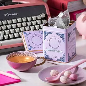 Harney & Sons Caffeinated Blossom Green Tea Tin Sachets Pink 31629, Cherry, 20 Count (Pack of 1)