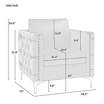 Harper & Bright Designs Modern Velvet Armchair, Tufted Button Accent Chair Club Chair with Steel Legs for Living Room Bedroom, Navy