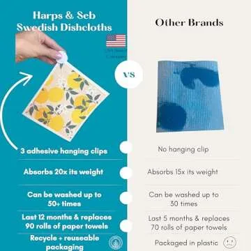 While there are various cleaning cloths on the market, the Harps&Seb Swedish Dishcloths stand out due to their combined focus on sustainability, functionality, and design. Unlike traditional paper towels that contribute to waste, these reusable cloths reduce environmental impact while ensuring high efficiency in cleaning. With their unique clips, which many competitors lack, you’ll find these cloths easy to store and access. Moreover, their high absorbency and tough scrubbing power outperform many common dish towels, providing an exceptional cleaning experience without the odor often associated with other fabrics.