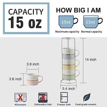 - Easy Maintenance: Cleaning takes no effort at all! Simply wash with soap and water to keep your mugs looking brand new—just be mindful not to use the microwave for the ceramic mugs or the metal rack.