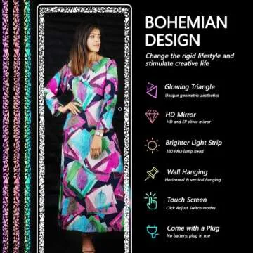 Hasipu Full Length Mirror 62" x 23",Full Body Mirror with Triangle Pattern Led Light, Mirror Full Length with Stand Wall Mounted and Floor Standing Mirror Dimming & 3 Color Modes (Black)