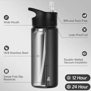 Show moreIntroducing the HASLE OUTFITTERS Insulated Water Bottle, engineered for those who demand durability, style, and functionality in their hydration gear. Made from rust-proof 304 food-grade stainless steel, this 16 oz water bottle is completely BPA-free, ensuring that what you drink is pure and safe. The sleek black finish adds a modern touch, making it not just a practical tool but also a fashionable accessory for any adventure.