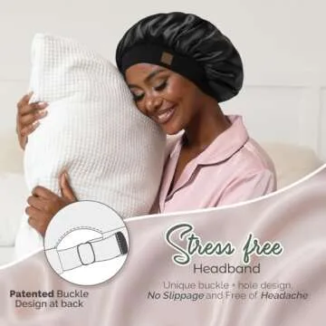 Hat Hut Satin Bonnet Silk Bonnet Sleep Cap for Women Hair Bonnet for Curly Natural Hair Sleeping Adjustable Wide Band Double Layer (Black)