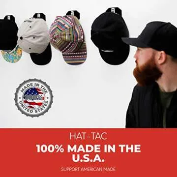 HAT-TAC - Wall Hat Rack Organizer (4-Pack) MADE IN USA Patented Baseball Cap Multi-Purpose Curved Shelf Hanger for Door, Closet, Office, Bedroom, Sturdy Clip Decor Mount System (HT Original Design)