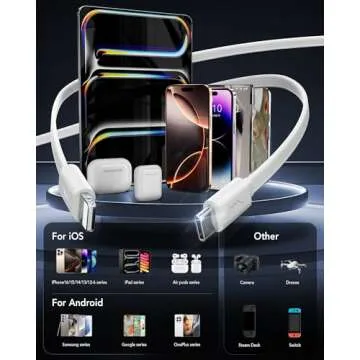 HATALKIN 4-in-1 Retractable Wall Charger with Dual USB Ports and 90cm Lightening and Type-C Cables, 40W Fast Charging Foldable Block Compatible with ipad,iPhone 16/15, airpods,Galaxy, Pixel, and More