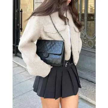 hathne Women's Wool Coat Casual Copped Bomber Jacket Zip Up Fall Shacket Coat Outerwear with Pockets(Beige,M)