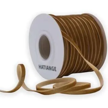 Show more Unleash your creativity with the HATIANGE Khaki Velvet Ribbon, a versatile crafting essential perfect for a myriad of projects. Made from 100% nylon, this single-face velvet ribbon measures an elegant 1/4 inch in width and comes in a generous 50 yards of luxurious khaki color. Whether you're creating stunning accessories or adding a touch of sophistication to your home decor, this ribbon effortlessly elevates your designs.
