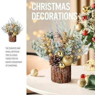 Hatisan Small Tabletop Christmas Tree with Ornaments, Pine Cones, Berries - Gold Round