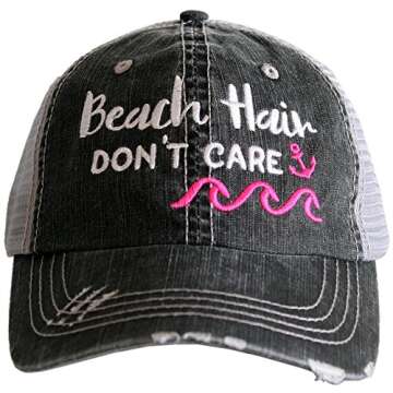 Hats Katydid KDC-TC-366 Gray and Hot Pink Beach Hair Don't Care Trucker