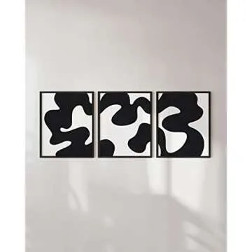 HAUS AND HUES Black and White Abstract Wall Art - Set of 3 Black and White Wall Art Modern Wall Decor, Contemporary Wall Art Modern Art Wall Decor, Black and White Artwork for Walls (Unframed 12x16)