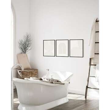 Show moreTransform Your Space with the HAUS AND HUES Mid Century Wall Art Set, expertly designed to elevate your aesthetic with minimal lines and soothing neutral tones. Each piece in this set of three boho prints captures the essence of modern artistry, making it an ideal addition to any room in your home. Crafted from high-quality 270 GSM solar white linen paper, this minimalist wall decor combines sophistication and elegance while promoting a harmonious ambiance. Embrace the allure of mid-century modern wall decor and redefine your space effortlessly.