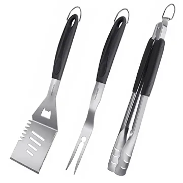 The grilling tools are made of premium extra thick, solid food-grade stainless steel.