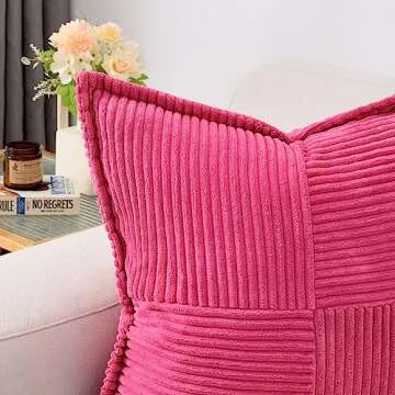 HAUSSY Hot Pink Throw Pillow Covers 20x20 Inch Set of 2,Soft Solid Corduroy Striped/Wide Bordered,Valentine Decor Pillows,Winter Home Decorations for Couch,Bed